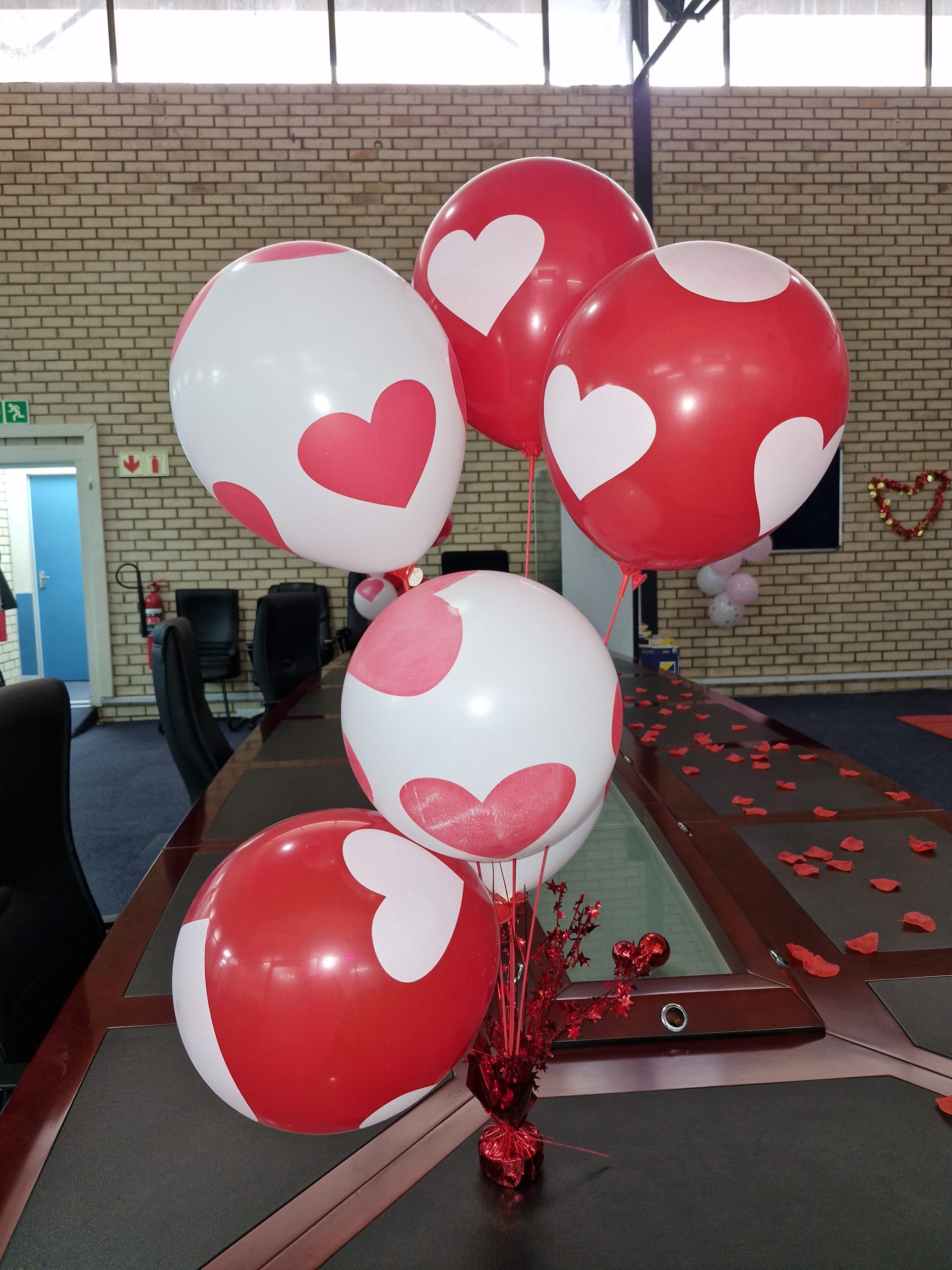 Red and white heart balloons celebrating Valentine’s Day